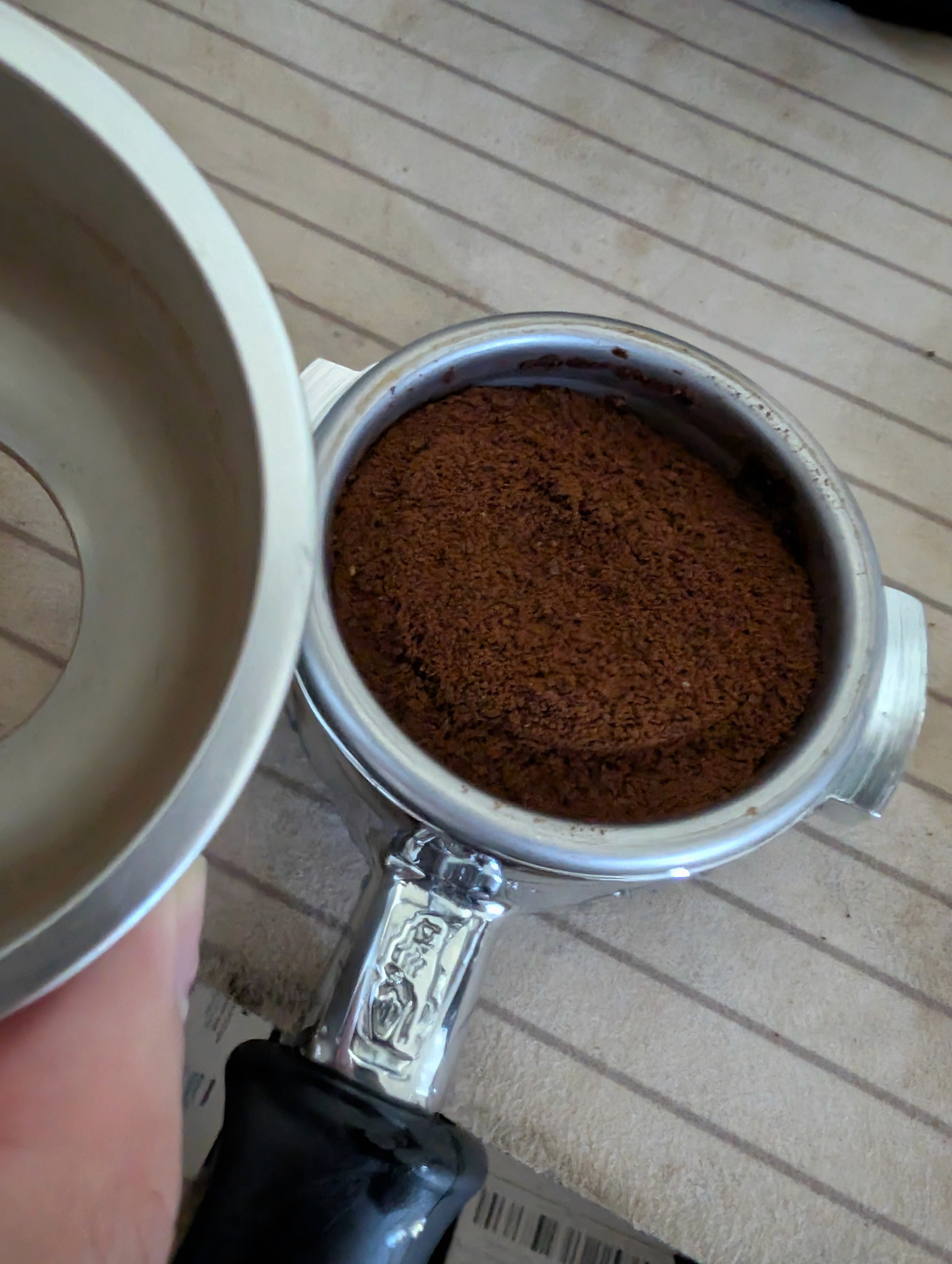 Portafilter (PF) is the tool that we use to hold the grounded beans for extracting our beautiful shot of coffee. The aroma of freshly ground coffee in the AMs is unbeatable.